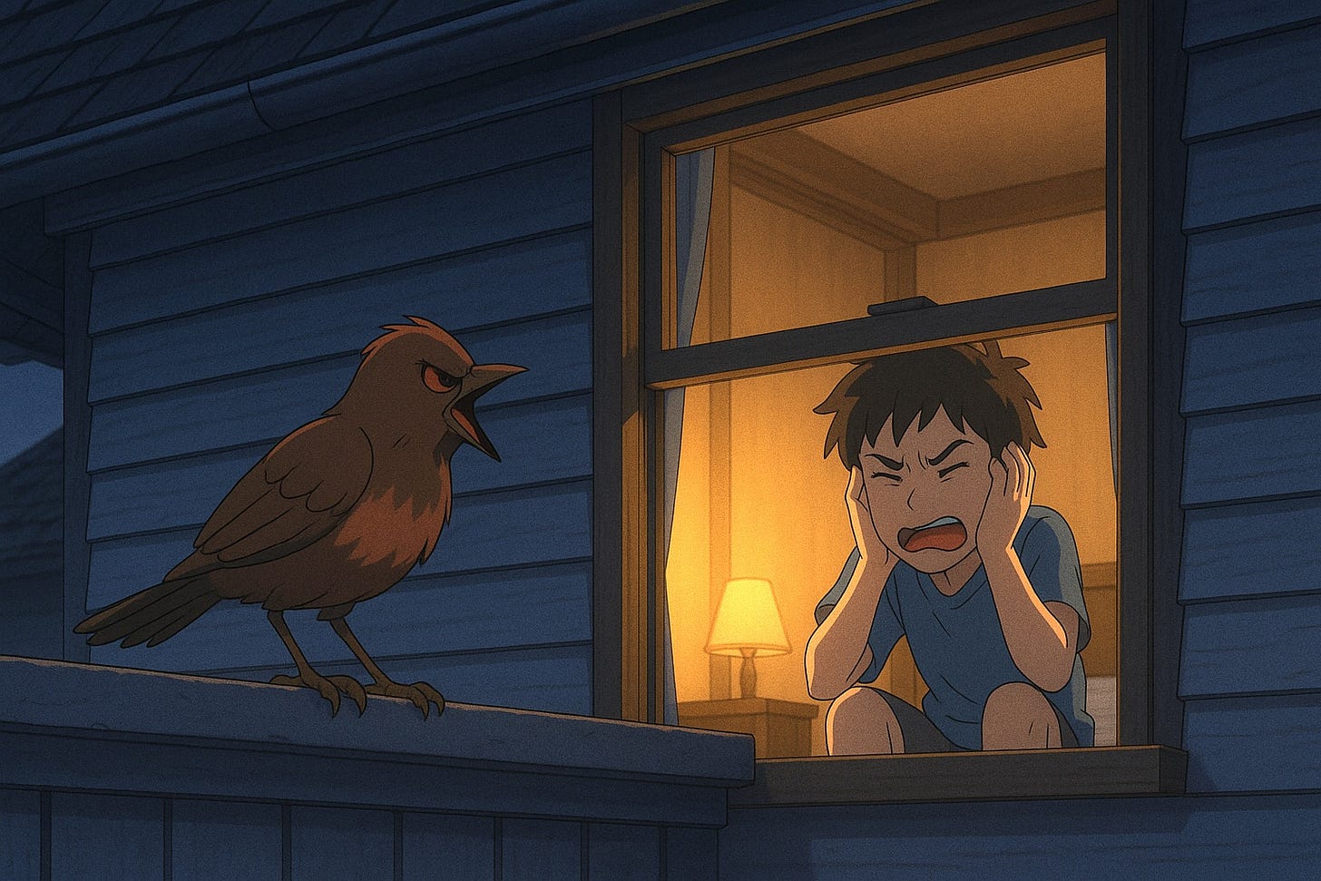 A few nights later, he set a trap he’d found in the garage, the kind meant for rats. He baited it with bread, placed it beneath the windowsill, then sat awake in bed, waiting. Around midnight came the snap. He bolted upright, heart hammering, relief flooding him. But when he pulled the curtain, his throat closed. The trap lay twisted, metal bent like clay. Above it, perched and gleaming, the bird sang with twice its former force. The walls buzzed. Eli slid down the wall and covered his ears, weeping.